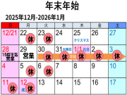 2025年12月4日 年末年始のお休み 28日は15時半まで、29日は営業します。
